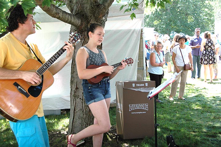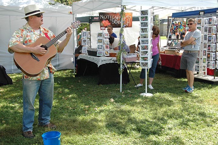 Last Saturday’s annual Art on the Lawn represented the 34th year that about 100 artists, both local and from around the region, displayed their wares on the green grass of Mills Lawn School. Adding aural aesthetics to the scene were buskers — some younger, some older — like Matt Minde and daughter Eliza Minde-Berman, who played the crowds for a good three hours. Other musicians included Celtic harpist and singer Bettina Solas, folk singer/guitarists Marianne Kesler and Scott Lindberg, and jazz guitarist/singer Les Groby.