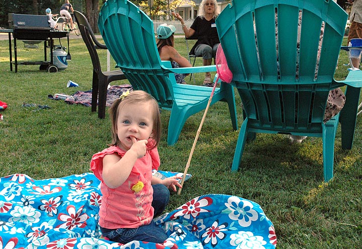 Best to start them young! One of the youngest block party revelers — Juniper DeVore Leonard, almost 2 — enjoyed her moment in the sun, and on a blanket, at the Whiteman/Davis Triangle party on Sunday, Aug. 27. Juniper’s father, Gavin DeVore Leonard, organized the gathering, which drew several dozen people from East Whiteman, East Davis, East Livermore and President streets.