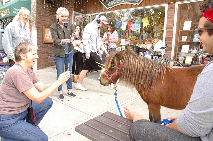 Baby D, aka Diablo, was the talk of the downtown Friday afternoon as he stopped foot traffic in front of Pangaea and Dark Star Books. The full-grown miniature horse had to endure questions about his size — pony or not pony — as well as many a selfie. Interim handler Jake Riley watched over the hooved sensation while owner Alex Snoddy and her best friend McKenna Moore brunched together. Diablo was spotted earlier this year at the Gaunt Park Pool First Annual Doggie Splash, photos of which can be found online at ysnews.com/feature-photos.