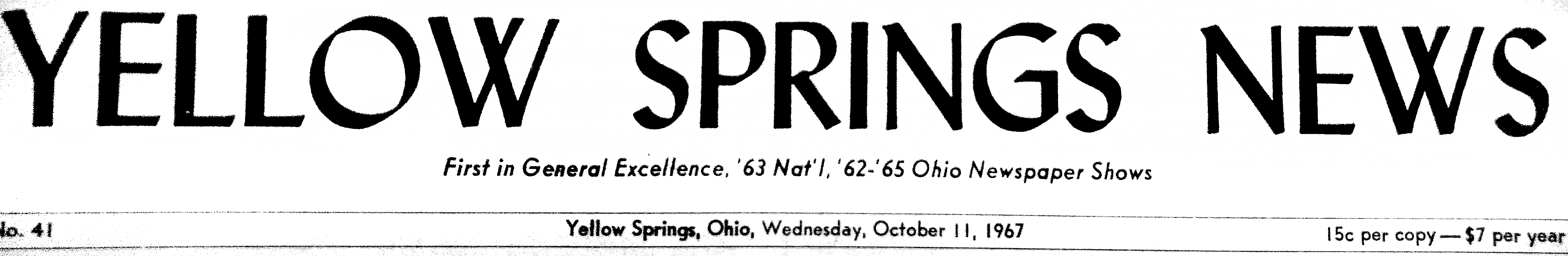 The final item in the gallery is a large ad in celebration of National Newspaper Week, Oct. 8–14, introducing the then-staff of the News to readers. Though the calendars for 1967 and 2017 are twins, this year’s National Newspaper Week was held one week earlier, Oct. 1–7. We didn’t observe — or actually even know about — National Newspaper Week, nor did we run a “Meet the News” ad this year, though perhaps we might in the future. Until then, if you want to “Meet the News,” stop into the office at 253 1/2 Xenia Avenue — where we’ve been for more than 50 years, and hopefully a few more — and take your own journey through our bound archives.