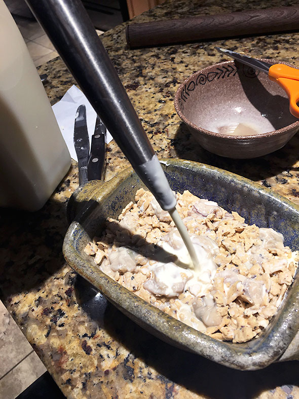 My father gave me the recipe…a savory parfait of sorts…alternating layers of dairy, cracker, and mollusk. He tells me to set the oven to 375 degrees and to give myself an hour to prepare and bake the dish. And to save a bite for him…it is so good.