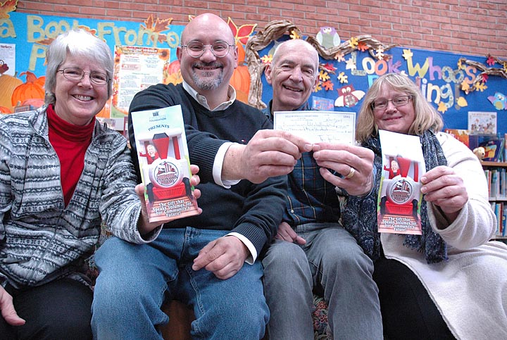 The Yellow Springs Library Association recently presented $3,500 to the Greene County Public Library Foundation to be used for the Dolly Parton Imagination Library. Pictured above are Connie Collett, head librarian, Yellow Springs Community Library; Karl Colón, director, Greene County Public Library; Roger Reynolds, treasurer, Yellow Springs Library Association and Bea Karthaus-Hunt, president, Yellow Springs Library Association. (Photo by Matt Minde)