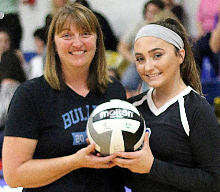 Finally, midway through the first match, the Broncos were able to pass a ball up to their setter and finally attempt a kill to the deep corner, which Payden was able to dig up with the Bulldogs not only the point but also getting Payden her 1,000th dig. Play was stopped so that Payden could be recognized for the accomplishment and the game ball was given to her. The Bulldogs went on to the win the game in three sets.