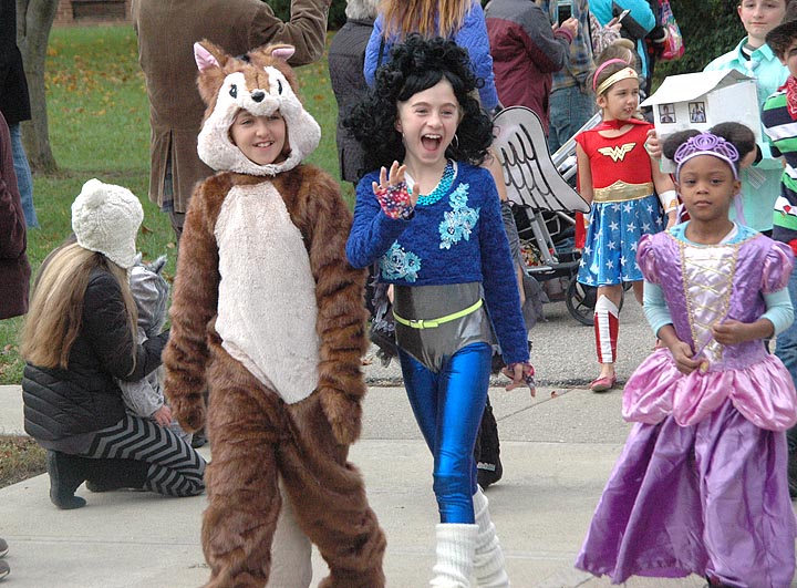 This year’s Mills Lawn ghouls trod the well-worn path of the traditional Halloween Parade, which was followed by an assembly, after which students were released into the wild to chase down treats and warm themselves by campfires around the village. Thanks to Principal Housh and Ms. Bussey for peering through dense layers of disguise and helping to name the mischief makers. (Photos by Robert Hasek)