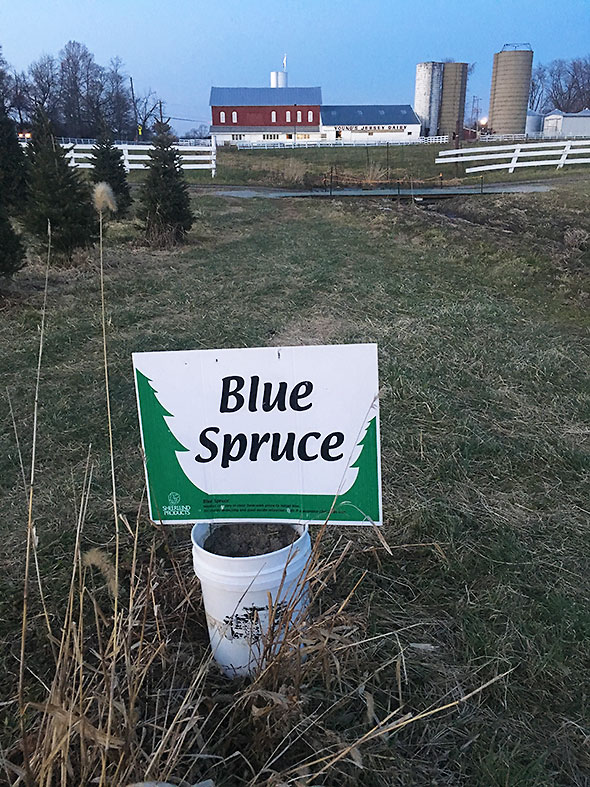 We looked again through the white pine to the east but my son looked west pointing to a grove of blue spruce saying “We should look over there.” We finished the row at the north end of the farm, crossed the creek as a family, and made our way past several tempting trees to the grove our son indicated. There stood a happy blue spruce; as soon as we saw it, we knew.
