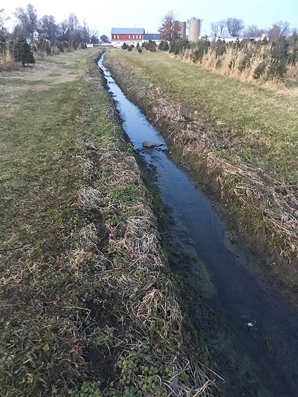 We crossed the bridge at the center of the property then turned north checking out the white pine and concolor fir along the edge of the creek. Turning south at the end of a row, we squinted into the sun…now suddenly at eye level and fading fast. We shook hands with a tall Canaan Fir, tempted briefly, before moving on towards the tallest white pine at the south side of the property. My daughter and I wore boots so here we could cross the creek where it was shallow but wide. The two of us crossed and walked the west bank of the ditch; the men walked the dog and sled parallel to us on the east bank. Just south of the bridge in the center of the property, my daughter and I jumped the creek and rejoined the men preparing to retrace our steps.