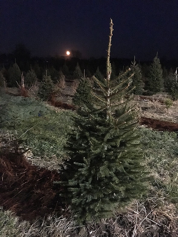 Saturday brightened up nicely for a fall day. The warm sunlight allowed us put aside our gloves and jackets and made the village a popular spot for the weekend. By the time, we arrived at Youngs’ Christmas tree farm, the business was bustling. It was ten minutes past 4pm when we got there. I know this as my husband hurried us out into the field. He checked his cell phone to see how much daylight we had left. We had an hour before the sun set and the all-but-full moon would rise.