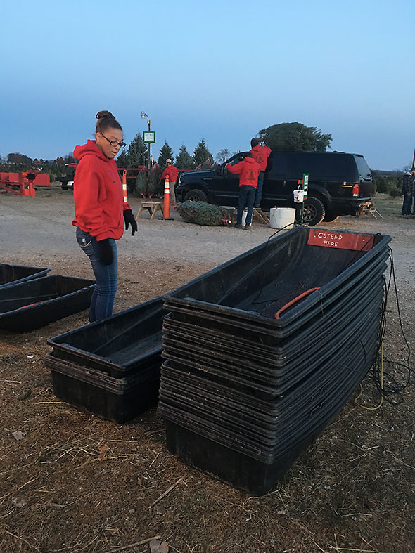 Jeremy picked up the tree and eagerly dropped it into the sled prepared to pull it toward the barn. I held him back wanting to store the saw safety under carpet below the tree’s skirt. After a brief awkward shuffle rearranging sled’s contents, our daughter took up the reins and pulled the sled’s great load back to the parking lot. She dropped off the tree for packaging then asked if she could pick out the wreath for our front door. She found one decorated with a big white bow and lots of little shiny packages. She draped the wreath around her shoulder and rewarded her parents with a winning smile.