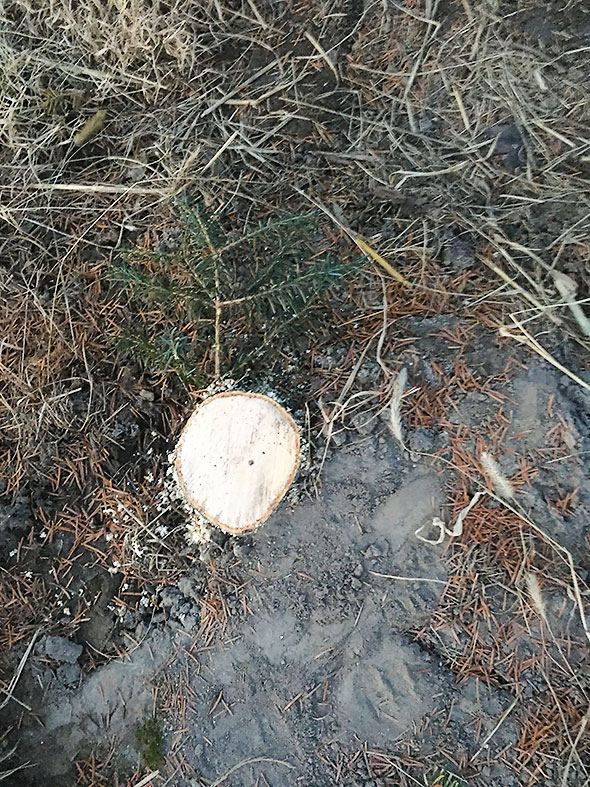 My son pulled out the carpet square, and the saw was handed to me. I laid down on the rug, squared my shoulders to the tree base, and cut. The kids watched as I drew the saw back and forth; my husband first drew the tree away from the saw and then towards and over to unbind the blade; one last draw and the saw cut clear.