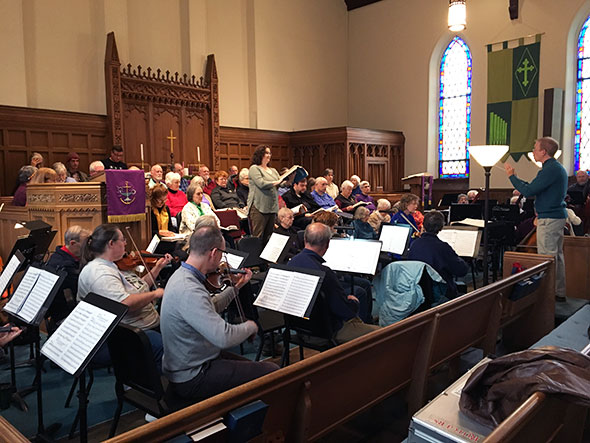 Tuesday’s rehearsal at the church went well. However, I was nervous for Saturday, a day packed and perhaps over promised. At 8:30am, I was scheduled to open the Winter Farmers Market at the Senior Center; at 9:45am I was due for a full rehearsal of the Messiah with orchestra, chorus, and soloists. The day’s density did not diminish after the morning. It further contained a dance recital at noon and a play date for our dog Bellatrix at the later afternoon.