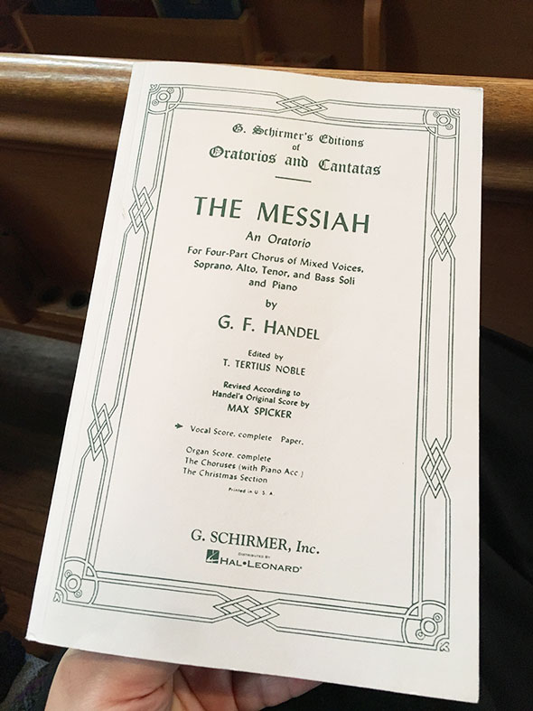 Jeremy took the kids to the village hardware store while I turned into the doors at the Presbyterian church. They would shop and I would join the rehearsal of Handel’s Messiah with the Yellow Springs Community Chorus and Orchestra. Inside the church, voices and instruments raced along Handel’s runs of notes; back in our living room, my family ran two new strands of colored LED lights round our happy blue spruce. Marking their success, our daughter added one green striped candy cane to the tree’s lit branches and, in that simple but elegantly ordained state, I found the winking tree when I returned.