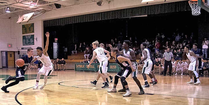 Away at Catholic Central, the boys struggled. At the end of the first half, the team led by one. However, sloppy turnovers and exhaustion got the better of the Bulldogs, and Catholic Central marched to a victory, 69–59. The high scorers for the boys were Tony Marinelli (18 points) and Andrew Clark (17 points).
