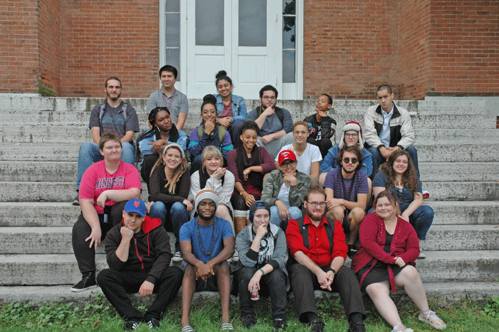 Antioch College’s new class gathered on the steps of Main Hall in early October for their first group photo. Twenty-eight strong (most of whom appear above), the class is notably diverse. Students hail from 10 states, have varied interests and almost half are students of color. (Photo by Audrey Hackett)