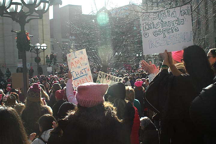 A crowd of several thousand people, including many from Yellow Springs, converged on Courthouse Square in downtown Dayton last Saturday, Jan. 20, for the second annual Dayton Women’s March. Speakers included several women running for office, including Kim McCarthy, running on the Democratic ticket for the seat of State Rep. Rick Perales, and Theresa Gasper, running as a Democrat for the seat of U.S. Congressman Mike Turner.