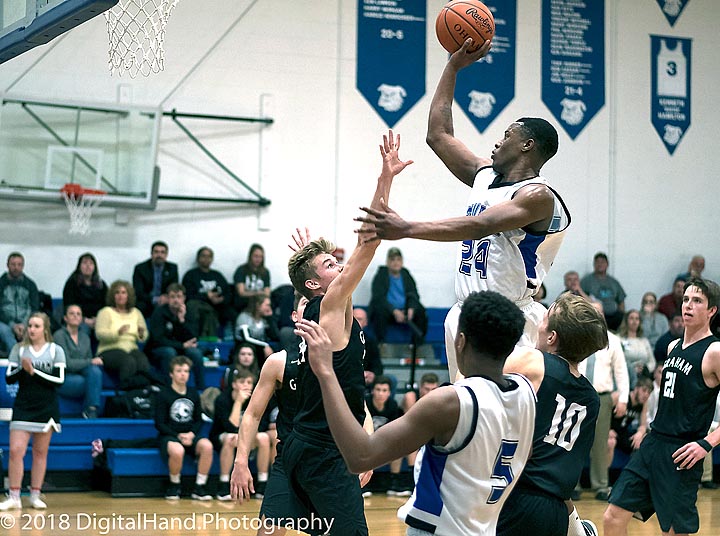 Entering the fourth quarter, the Broncos still led by nine, 46–37. However, Andrew Clark took over in the fourth. At the end of regular time, the score was 51–51. The boys had tied it to head to overtime. In the five-minute overtime period, the Bulldogs outscored the Broncos, 8–4. Fisher Lewis hit a mid-range jumper in the clutch and Andrew Clark continued his dominance from the fourth quarter as the Bulldogs pulled out the win, 59–55. Fisher Lewis led the team with three blocks, James Browning posted a double-double of 11 points and 10 rebounds, Donnie Isenbarger scored 14, and Christian Elam had 4 steals. Not to be outdone by the seniors, Andrew Clark scored 19 points to lead all scorers.