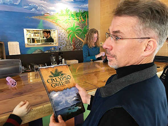The irony of this new fallen snow is that it landed on the opening day of a West Indian experience…The Calypso Grill.