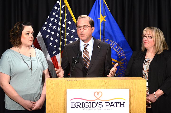 Azar was visiting Brigid’s Path in Kettering, an inpatient facility that treats newborns exposed to opioids in the womb, helps mothers to recover from their addiction and supports families in this transition. The babies often need to be held for 24 hours per day, according to one volunteer at the center, and not a single baby coming through the facility has had to enter foster care.