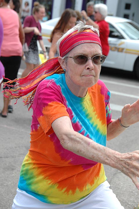 Celia Diamond beckoned onlookers to join in the fun at the annual Senior Center flash mob dance on Wednesday, May 30 on Short St. The performers, who came from both the Senior Center and the Children’s Center, danced to a mash-up of songs by Michael Bublé and James Brown in celebration of National Senior Health and Fitness Day. The dancers practiced for weeks leading up to the performance, led by Lynn Hardman. (Photos by Lauren “Chuck” Shows)