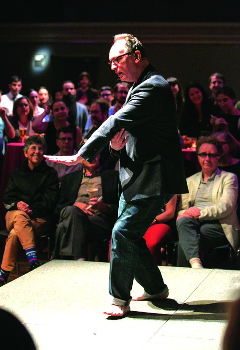 Guest artist Paul Lazar of New York City will visit Antioch College this Friday to put on a solo performance piece, “Cage Shuffle,” in which he recites the stories of experimental artist John Cage along with a movement sequence. The title is so named because Lazar is fed the stories through an ear bud using an iTunes playlist set to shuffle. The performance is Friday, July 20, at 7 p.m. at Antioch’s Foundry Theater. (Submitted photo)