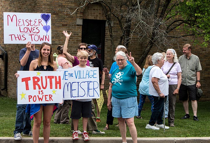 About 25 villagers showed up on Saturday, June 23, at noon at the Bryan Center, to protest what they see as unjust discipline on Meister. Protestors then walked through downtown carrying signs in support of Meister.