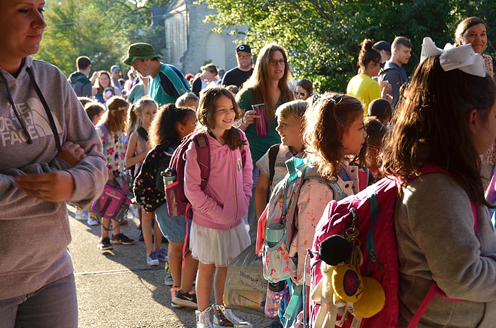 Mills Lawn second-graders lined up outside the school’s front door on a sunny Friday morning, Aug. 24, in anticipation of beginning their first day of the 2018–19 school year.