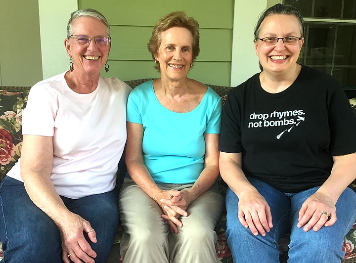 A group of five poets meet regularly in the village to share and critique each other’s work using a unique method developed in nearby Greenville. From left to right are Fran Simon, Anne Randolph and Joan Harris of the group. Not pictured are Maxine Skuba and Annette Oxindine. (Photo by Carla Steiger)