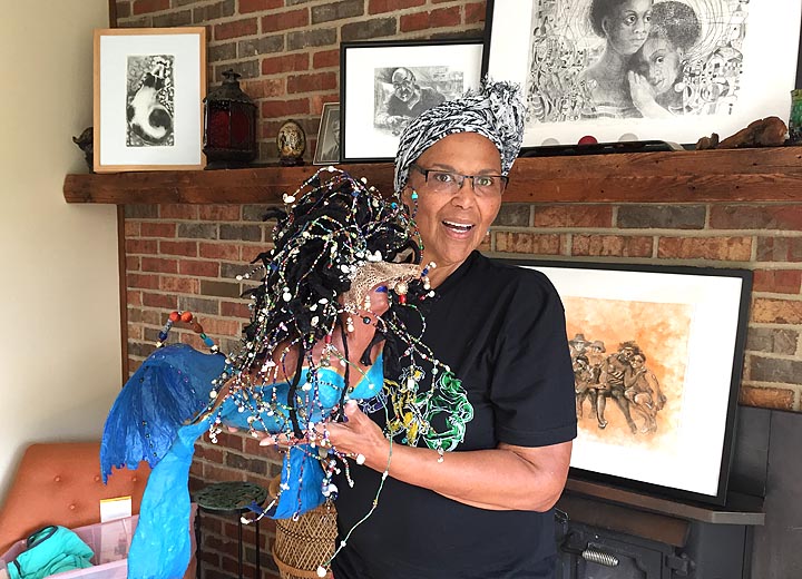 While in high school in Cedarville, she continued making art, and gained vocational training in graphic art at what was then called the Greene Vocational School, now the Greene County Career Center. After that, she was admitted to Antioch College in 1978, the first in her family to go to college.