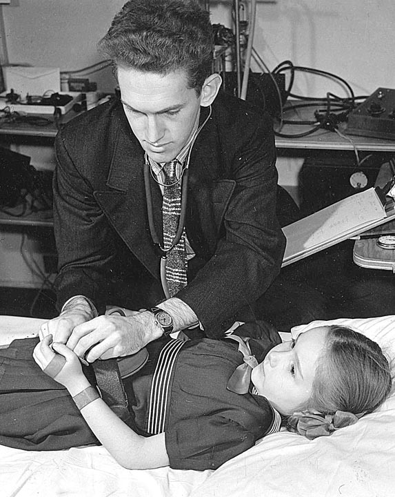 An unidentified Fels Longitudinal Study doctor is shown here circa the 1950s examining a young participant. The longest and largest longitudinal health study in the world, the Fels study, for many years based in Yellow Springs, still has more than 1,000 participants in the area, who had yearly appointments beginning in childhood to gather information on body composition. Last month Wright State closed down data collection for the Fels study, which would have turned 90 next year. (Photo courtesy of Antiochiana, Antioch College)