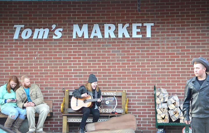 During a busy and beautiful holiday weekend in Yellow Springs — which included a Wednesday evening tree lighting, Yellow Friday and Small Business Saturday and horse carriage rides — a street busker entertained holiday shoppers while villagers went about their regular business. (Photos by Megan Bachman)