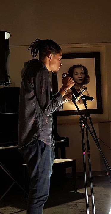 Toledo-based poet JT Robinson performed original poetry and spoken word at the Coretta Scott King Center RHYME & REASON event in October, hosted by the Antioch Creative Collective. (Submitted photo)