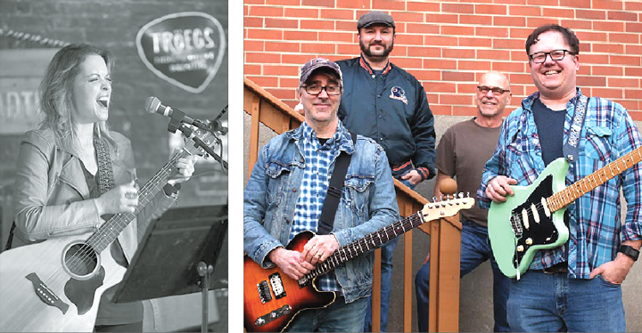 Local singer Rachel Litteral will open for Dayton-based band John Dubuc and The Guilty Pleasures at the Emporium this Friday, March 22. Pictured here, Litteral recently performed a solo set in Dayton; members of John Dubuc and The Guilty Pleasures including, from left, Brian Hoeflich, Dubuc, Tom Rastikis and Rich Reuter, posed during a recent rehearsal. (Photos by Gary McBride)