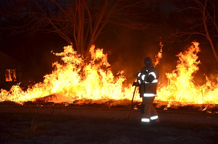About a dozen members of Miami Township Fire-Rescue participated Tuesday, April 2, in a controlled burn of the prairie grass in the natural burial area at Glen Forest Cemetery, off U.S. 68 north.