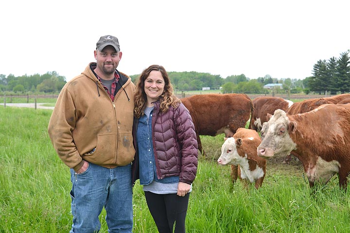 Scott and Jillian Marshall are in their seventh year of raising beef cattle at their West Jackson Road farm a few miles northeast of the village. The local farmers — who still have their day jobs — love caring for the cows, teaching their children about the cycle of life and serving customers with antibiotic-free, mostly grass-fed beef. (Photo by Megan Bachman)