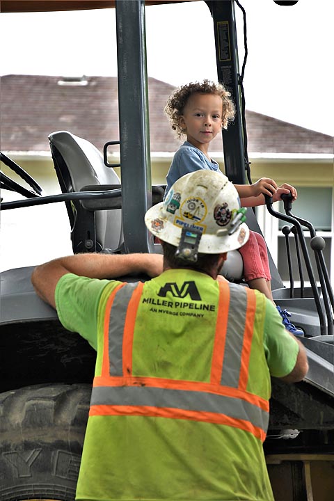 Last Friday, Kai Eyorokon-Miller, 3, was pondering his potential on the backhoe at the corner of Walnut and Dawson streets, while a Miller Pipeline worker patiently explained the levers. Miller Pipeline is replacing Vectren gas lines in four separate areas of the village through the end of the year.