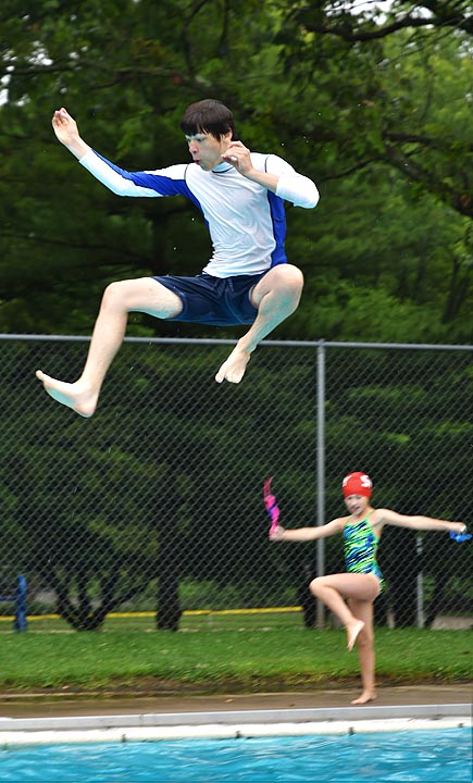 Kevin Cotellesso leaped with gusto into the deep end of the Gaunt Park pool earlier this month during a fun swim for the Sea Dogs (click here for championship results). The local pool was a popular place over the weekend, as temperatures soared across the region into the mid-90s and soupy conditions prevailed. The weekend is forecast to be mostly clear with temperatures in the upper 80s.