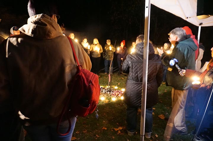About 40 people formed a candle-lit circle around the small pawpaw tree to sing “Happy Birthday to You” and share some stories about Clark’s life, while camera news crews from two area television stations filmed the gathering.