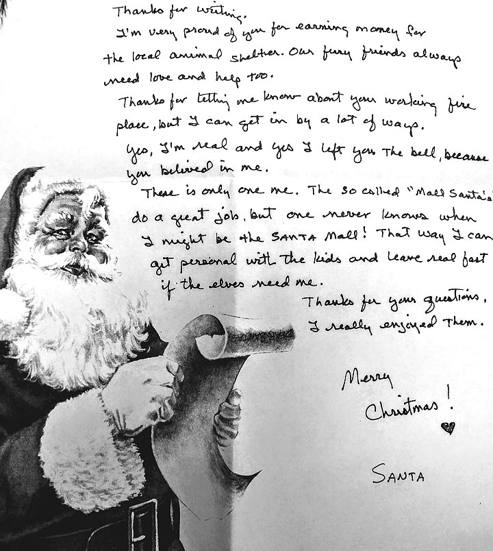 Within a few hours, Santa’s reply had been penned, sealed, picked up by the mail carrier and delivered straight into the hands of the waiting child.