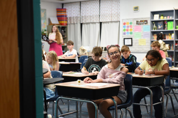 The halls of Yellow Springs Schools were filled once again with the voices of eager young students Thursday, Aug. 21 — the first day of school. Though the end of summer break is always bittersweet, students were wearing smiles (as shown above) as they reunited with friends and teachers and settled into their studies. (Photo courtesy of YS Schools)