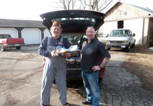 Patterdale Hall steward Chris Wyatt (right) is shown dropping off chili to friend Jon Vanderglas for grading. (Submitted photo)