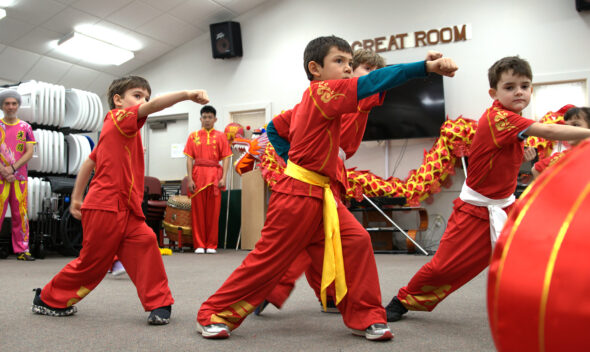 Marking the occasion was a colorful set of performances at the Senior Center two days before staged by the Ohio Wushu Academy, involving dancing dragons, high kicks, acrobatics, board breaking and more.